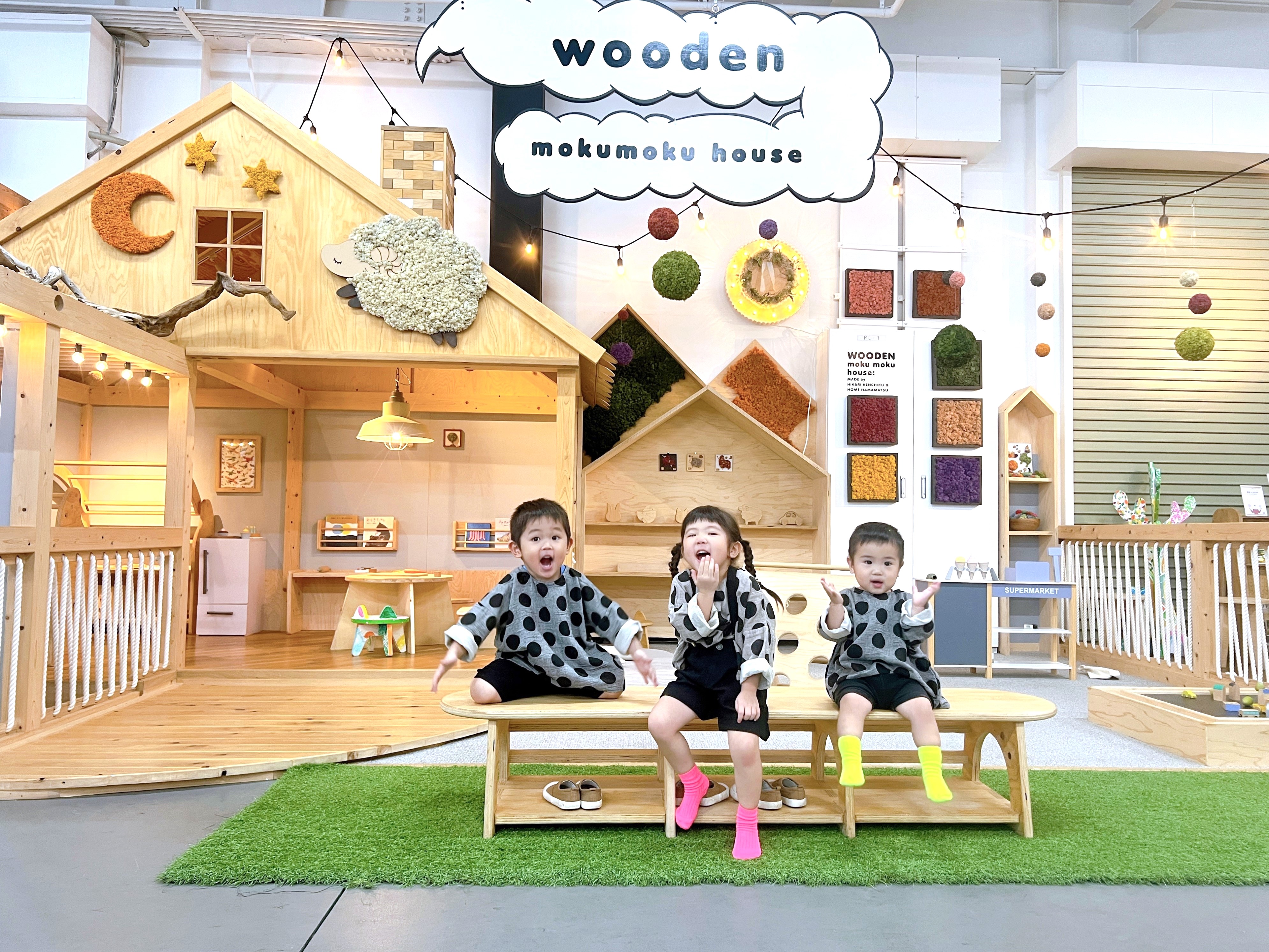 お家型のキッズスペースでは木製のおもちゃを中心に遊ぶことができます
