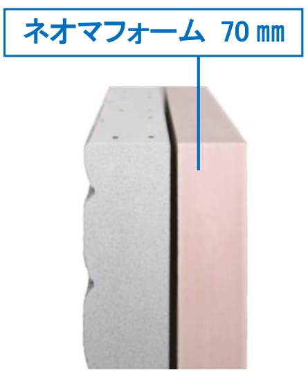 へーベルハウスは全商品に耐久型断熱「ヘーベルシェルタードダブル断熱構法(※4)」を標準仕様化しています。この度、その層構成は維持したまま3・4階建ての外壁へーベルの内側に入れる断熱材「ネオマフォーム」の厚みを70㎜(※5)に増強しました。ロングライフ次世代複合サッシの開発と合わせることにより、重鉄・システムラーメン構造の3・4階建てで断熱等級6の標準仕様化を実現するとともに、戸建全商品において断熱等級6を標準仕様化しました。