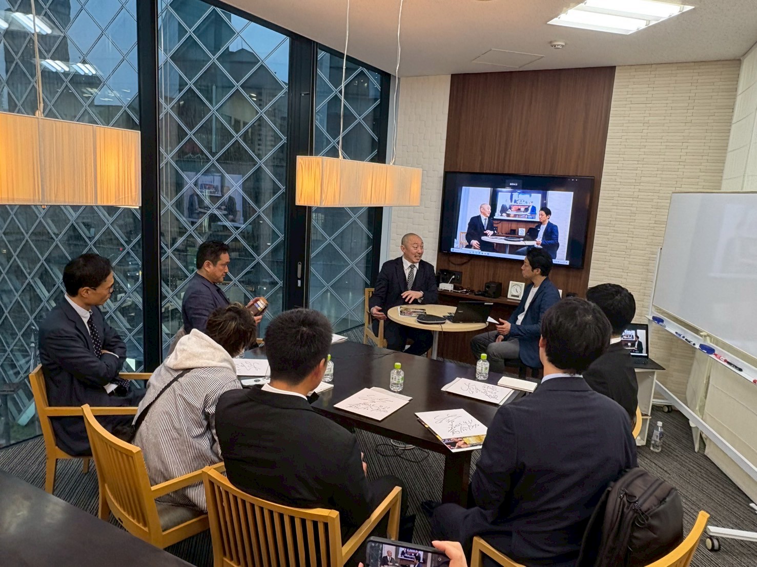当日はキックボクシングやK-1で華々しい戦績を残した一方、初めてムエタイに挑戦した際に経験した恐怖や挫折、どのように自らのメンタルを鍛え直し、チャンピオンになるに至ったか、現在、次世代の育成で目指していることなどが武田氏自身の率直な言葉で語られました。また、JGBAの田島亮代表理事が進行役を務めつつ、武田氏自身が自宅を購入した際の経験やその際に顧客として感じたこと、スポーツジムを主宰する立場から持ち続けている経営者としての信念、育成にかける思いや心掛けていること、現役時代のデビュー戦の思い出など、格闘技ファンならずとも引き込まれるエピソードが披露されました。また、会場参加者限定で武田氏のサイン色紙の進呈や、記念撮影なども実施したほか、恒例の懇親会も開催されました。