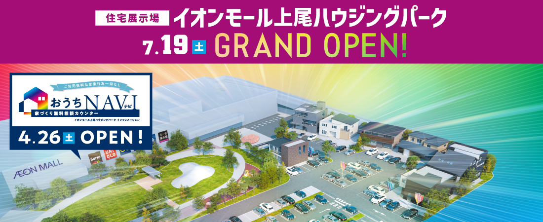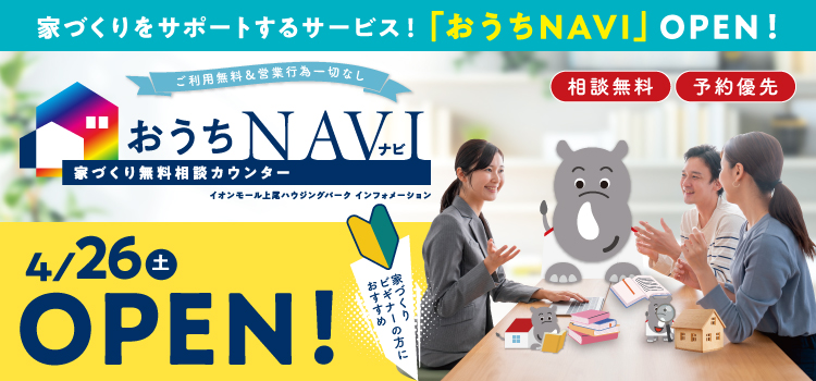 ホーム商品サービス【4月26日(土)オープン】住宅展示場「イオンモール上尾ハウジングパーク」家づくり無料相談カウンター『おうちNAVI』が先行オープン!