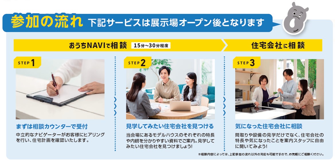 ご相談の流れ(7月19日の住宅展示場オープン後より開始)