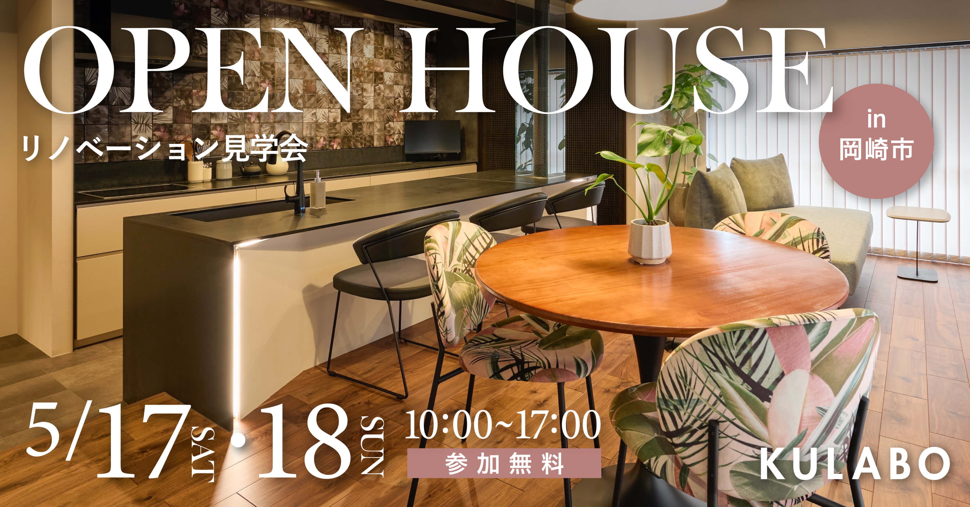 愛知県でリノベーション事業を展開する株式会社sumarch(本社:愛知県名古屋市中村区、代表取締役:鳥居儀彰、以下KULABO)は、マンションリノベーション見学会を2025年5月17日(土)・18日(日)、愛知県岡崎市にて開催いたします。