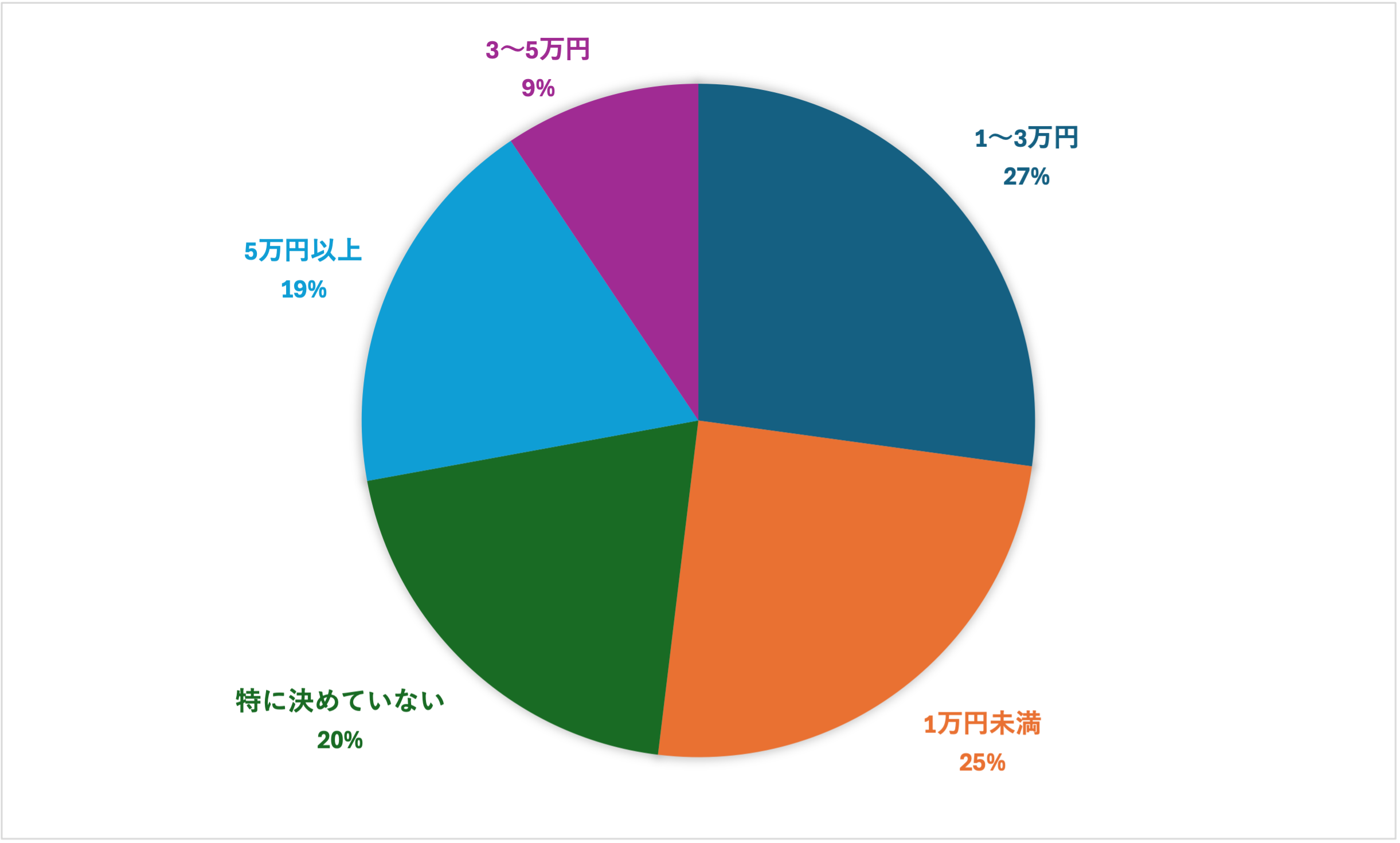「毎月貯蓄額を決めていない」と回答した方が20%で、金額を決めている方のうち1万円未満を含む「3万円以下」と回答した方が合計52%でした。5万円以上貯蓄している方は19%でした。