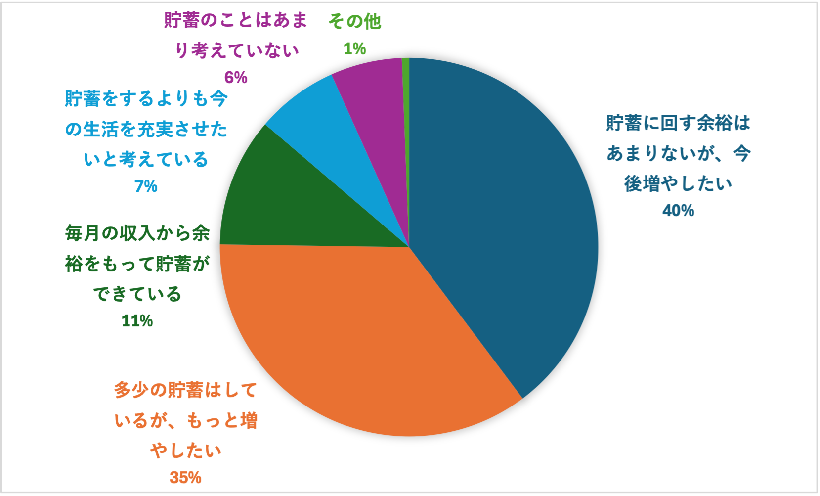 「多少貯蓄はしているがもっと増やしたい」「今は余裕はないが今後増やしたい」と回答した方が合計75%でした。「毎月の収入から余裕をもって貯蓄できている」と回答の方は11%でした。