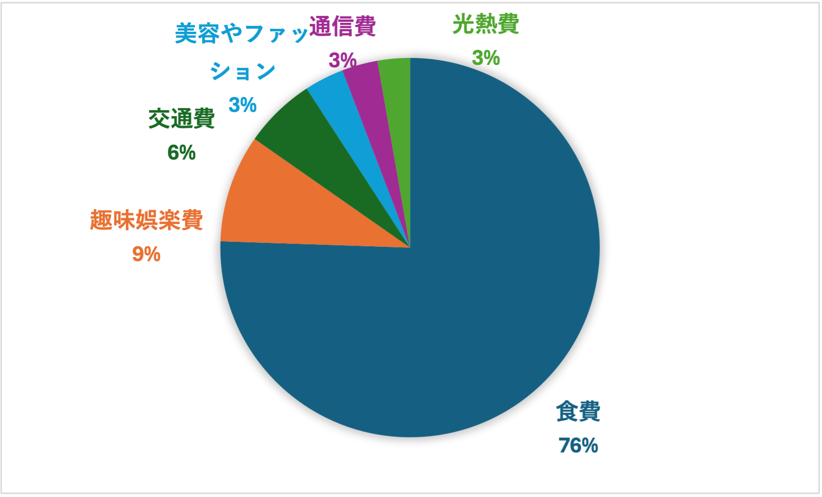 普段節約を意識している分野で「食費」と回答した方が76%でした。通信費や光熱費などの固定費と回答した方は合計6%でした。