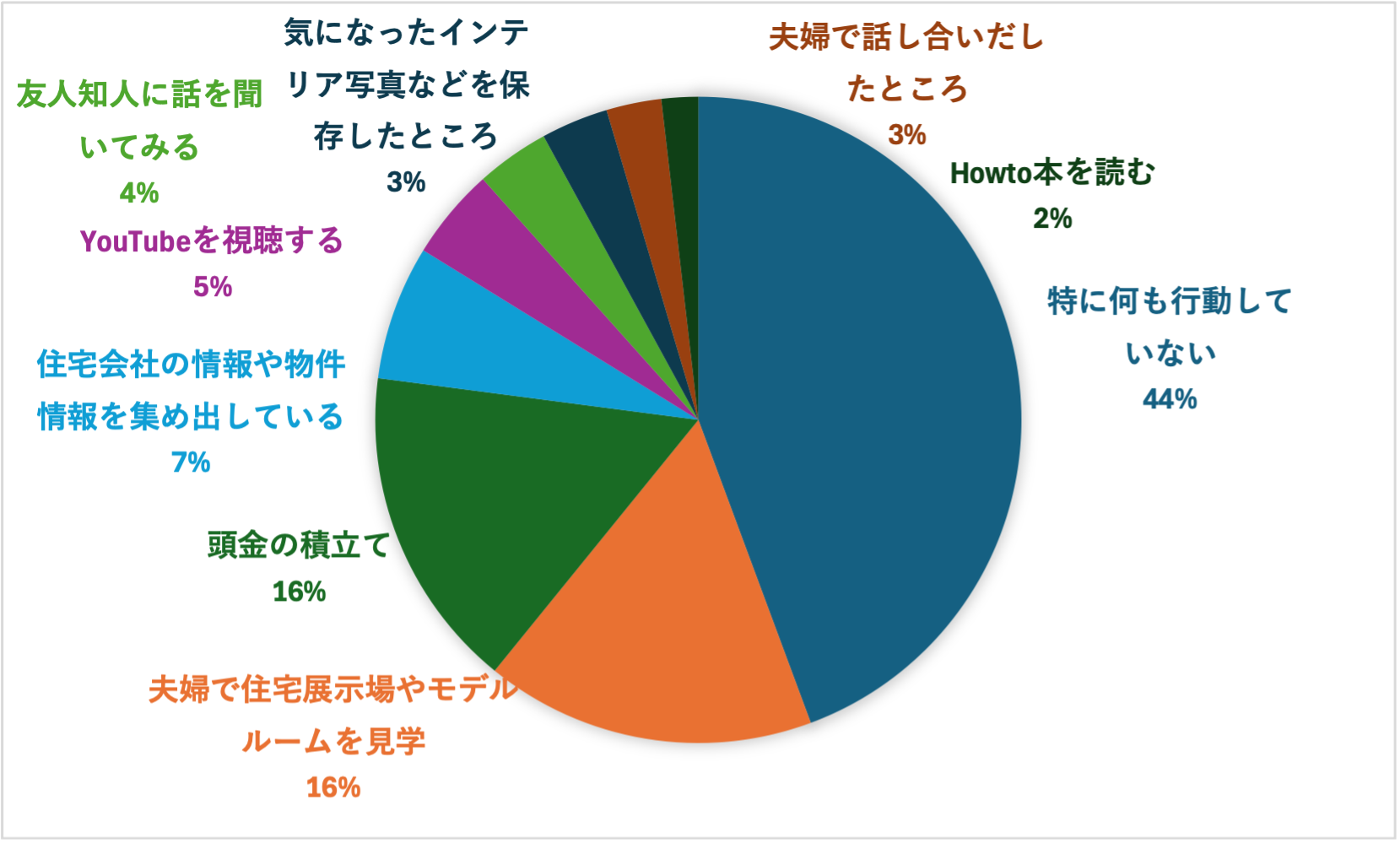 44%の方が「特に何もしていない」と回答していますが、「頭金の積立て」と回答の方が16%いました。