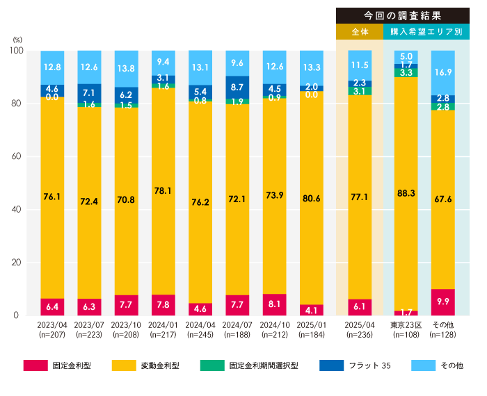 ☑変動金利を77.1%が選択、未だに変動金利での検討が大多数を占める結果に