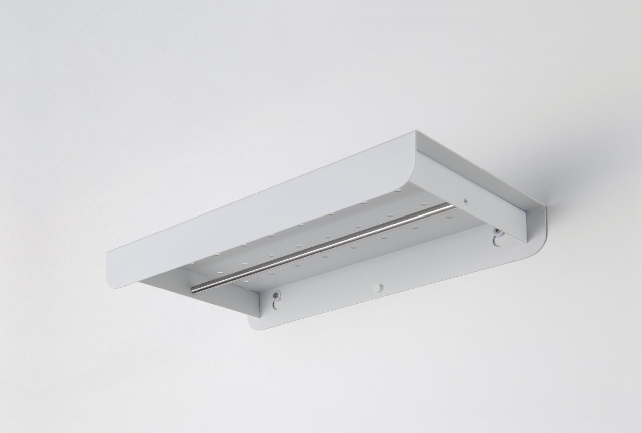 スロップシンクなどの上に設置し、洗い物を一時的に置くスペースとして使えるタイプです。棚の裏側に設置したタオルバーには、濡れた雑巾などを掛けて乾かすことができます。