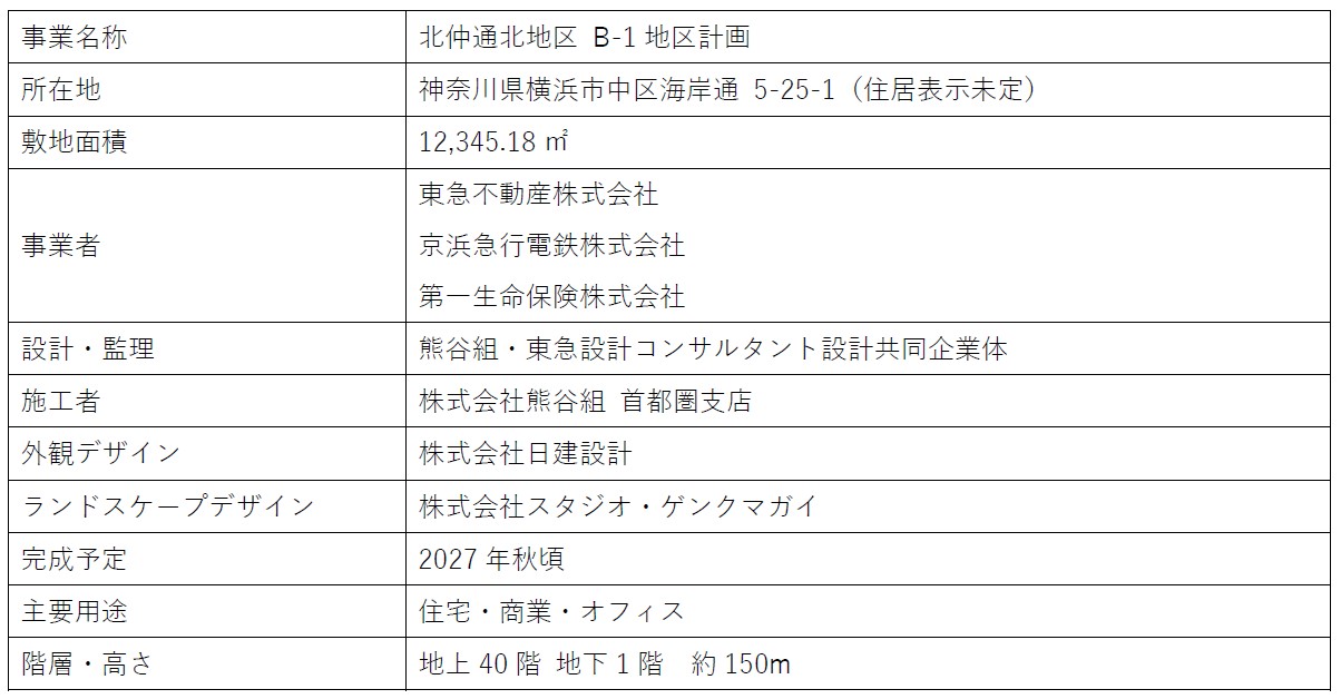 東急不動産株式会社(本社:東京都渋谷区、代表取締役社長:星野 浩明)、京浜急行電鉄株式会社(本社:横浜市西区、取締役社長:川俣 幸宏)および第一生命保険株式会社(本社:東京都千代田区、代表取締役社長:隅野 俊亮)は事業者として推進する「北仲通北地区B-1地区新築工事(以下「本事業」)」の街区名称を「ハーバーステージ横浜北仲(HARBOR STAGE YOKOHAMA KITANAKA)」に決定したことをお知らせいたします。希少な立地となる水際の最前列に「日常を輝かせる水辺のステージ」が誕生いたします。