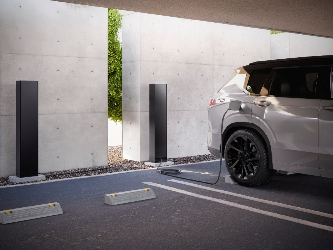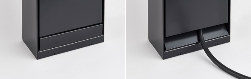 本体下部にはフラップドアを採用しており、充電中も、ケーブルの必要分だけをフラップドアから引き出し、余剰分は扉で隠したままにできます。