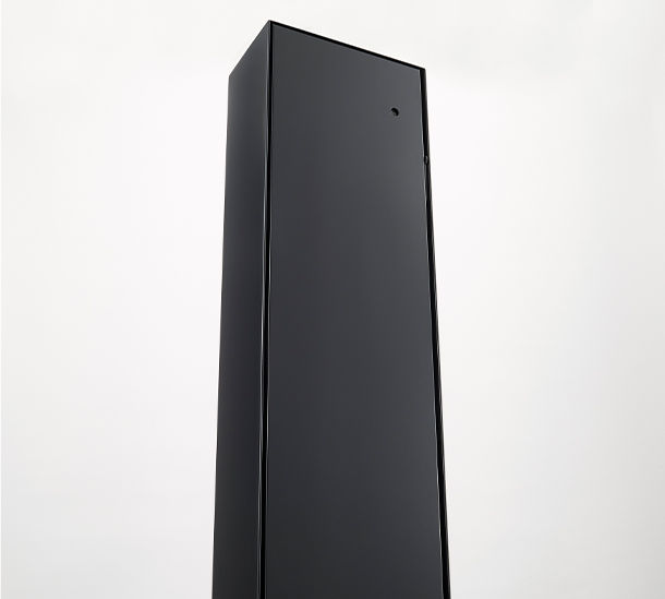 開閉時のハンドルは、目立たないフラットなデザインです。鍵も本体と同色のブラックで統一させています。