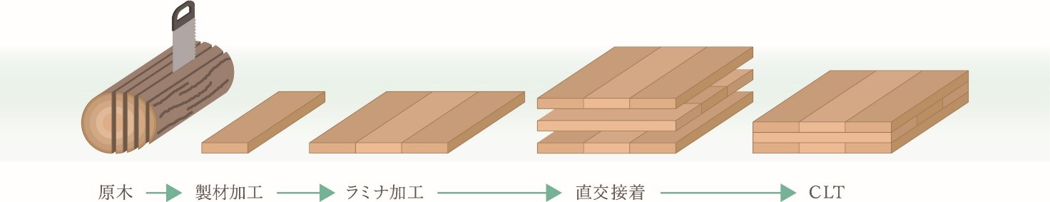 CLTとは、ひき板(ラミナ)を並べた層を、板の方向が層ごとに直交するように重ねて接着した大判パネルで、1990年代中頃からオーストリアを中心に発展してきた木質構造材です。優れた耐震性・断熱性・耐火性を持つことから、欧米をはじめとする世界各国で建築物への活用が急速に広がっており、日本国内においても今後の活用拡大が期待されています。