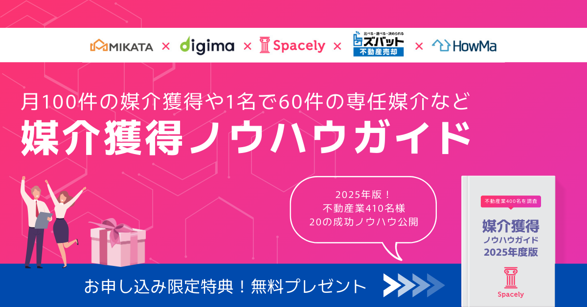 2025年不動産事業者410名様に「媒介獲得」についてアンケートを行い、その結果をまとめた成功ノウハウガイドを作成いたしました。一括査定サービスからの反響攻略方法などもご紹介しております。