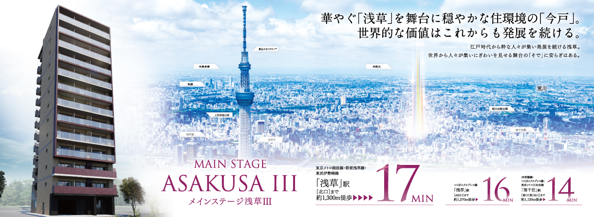 東京都内を中心にワンルーム投資マンション事業を展開する青山メインランド(代表 西原良三)が江戸の代名詞「浅草」に自社ブランドマンション「メインステージ浅草Ⅲ」の販売を開始しました。