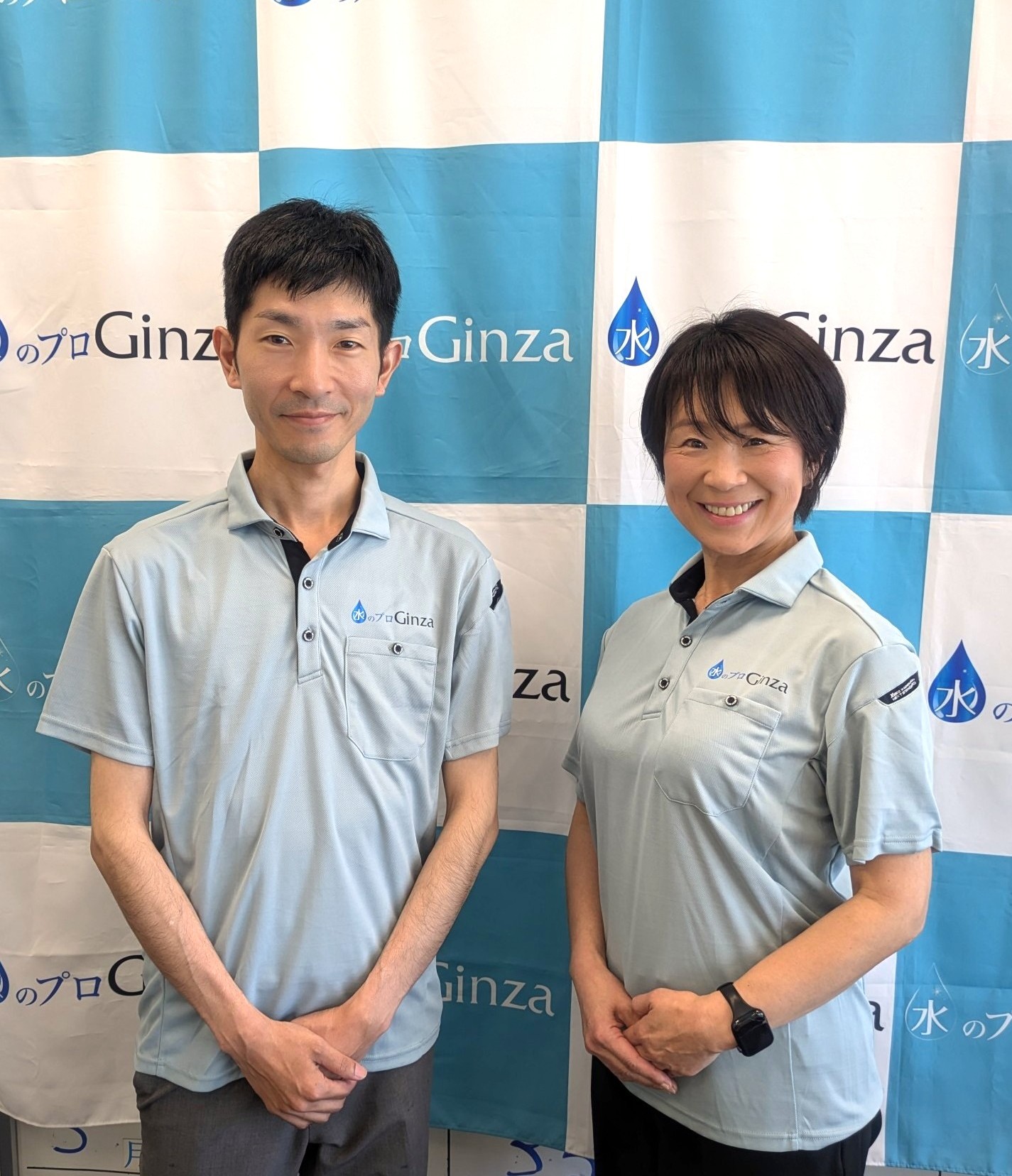 多くの方に水のプロGinzaの名前を覚えていただけるこちらのユニフォームは、男女問わず着用できるデザインになっていますので、従業員からも大変好評です。