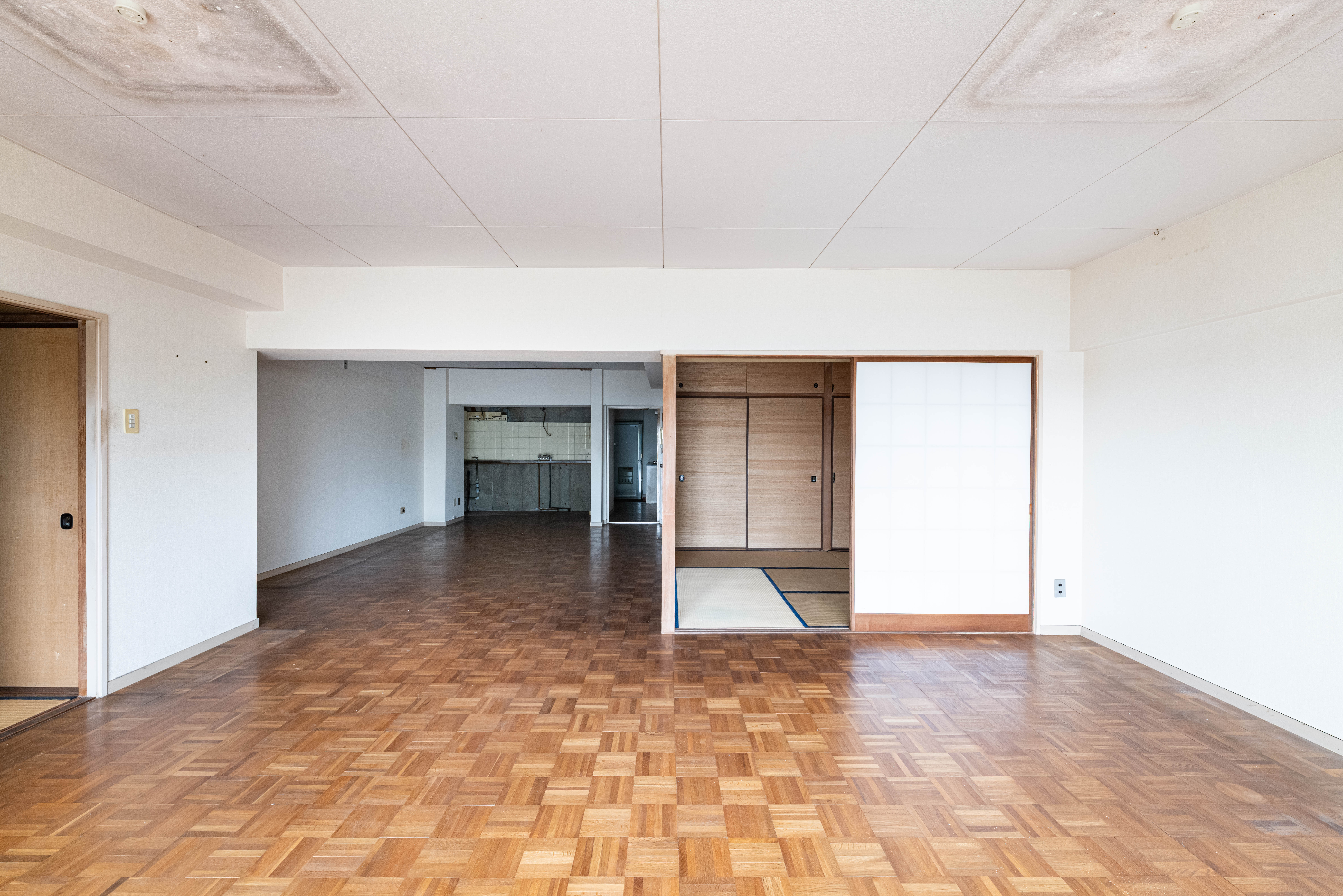 「我孫子台マンション」は1974年に分譲開始されて以来、JR我孫子駅徒歩圏内にありながら手賀沼を一望できる希少価値のあるロケーション、4LDK・90㎡以上の広さなどの好条件で人気の物件です。長年このマンションを愛し住み続けているご入居者が多い中で、高齢化や相続などで手放される物件を晃南土地が購入。新しいオーナー様と一緒にリノベーションに取り組み、完成後お引き渡し、というリノベーションプロジェクトを開始しました。
