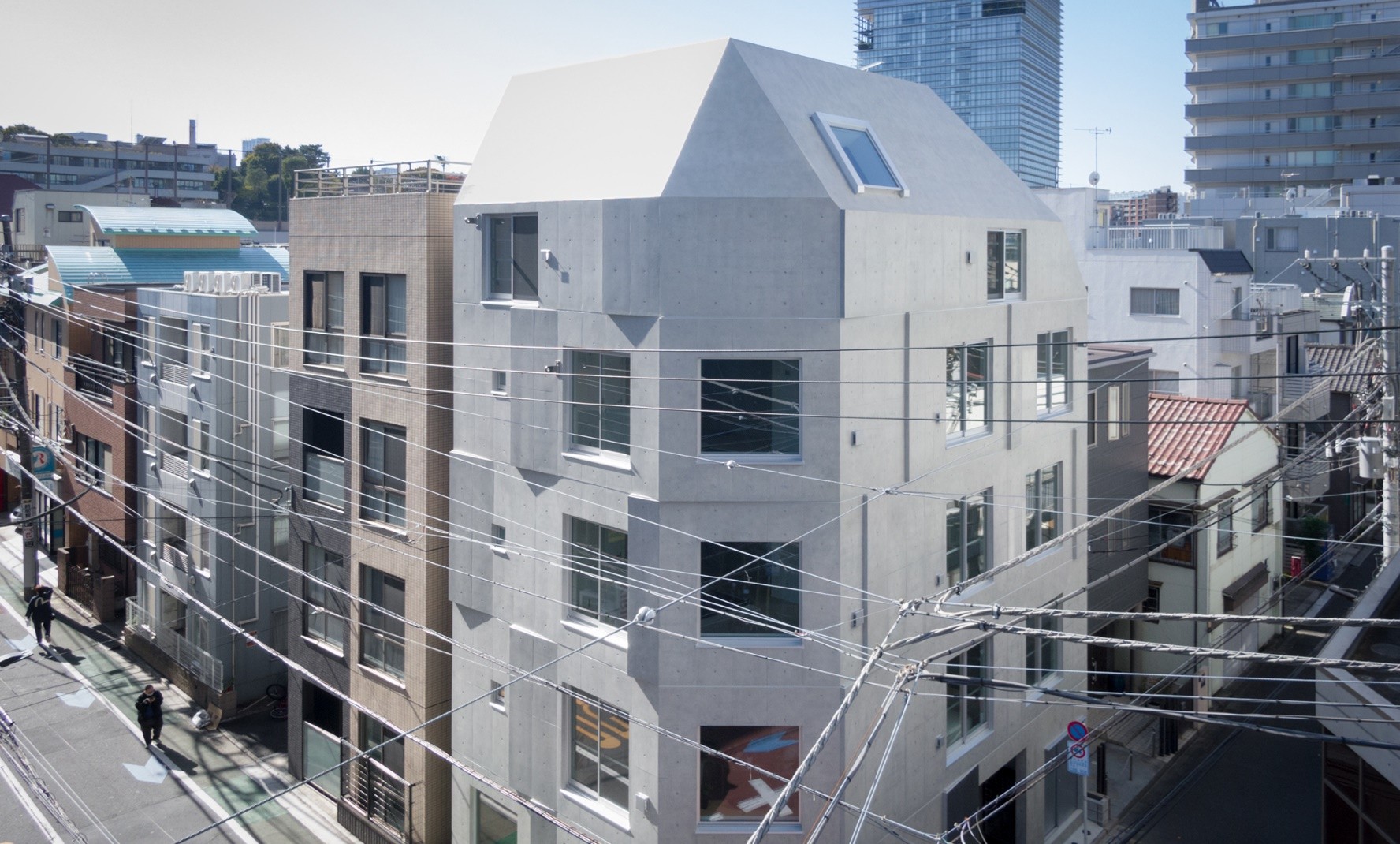 東京の中心、港区白金に位置する集合住宅・店舗・事務所の複合ビル「ESCENARIO白金」は、五の橋からの通りの四差路角地にあり、街角にあるアイコニックなデザインを意識しています。ファサードはコンクリート打放しで、渦巻状に変化したコンクリート面が特徴的です。このデザインにより、季節や時間によって多様な表情を見せることが出来ます。各住居はワンルームから1ベッドルームタイプで、正方形の開口部が空間の広がりを演出します。可動壁を用いた多様な空間構成が可能で、メインの用途である住居の居住者が自在にリビング、ダイニング、ベッドルームを変化させることができます。4階と5階はメゾネットで、ロフトスペース付きのペントハウスとして設けられています。多様な屋内外の空間を提供し、ミニマリズムを基調に、素材と大らかな空間構成により居住者が主人公となる豊かなライフスタイルを提案しています。