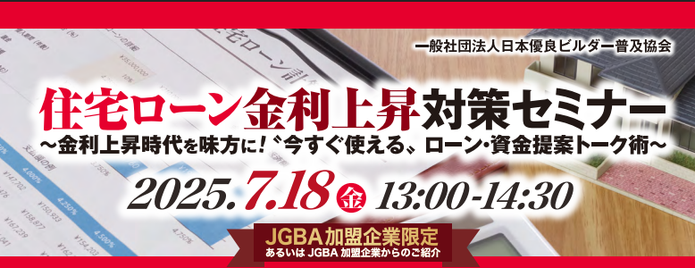 イベント名:JGBA「住宅ローン金利上昇対策セミナー~金利上昇時代を味方に! “今すぐ使える” ローン・資金提案トーク術~」