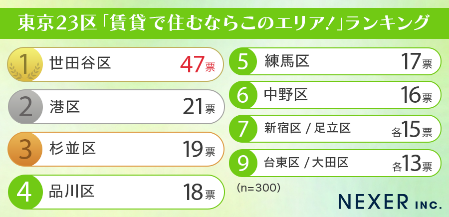 株式会社NEXER・東京23区「賃貸で住むならこのエリア!」に関する調査