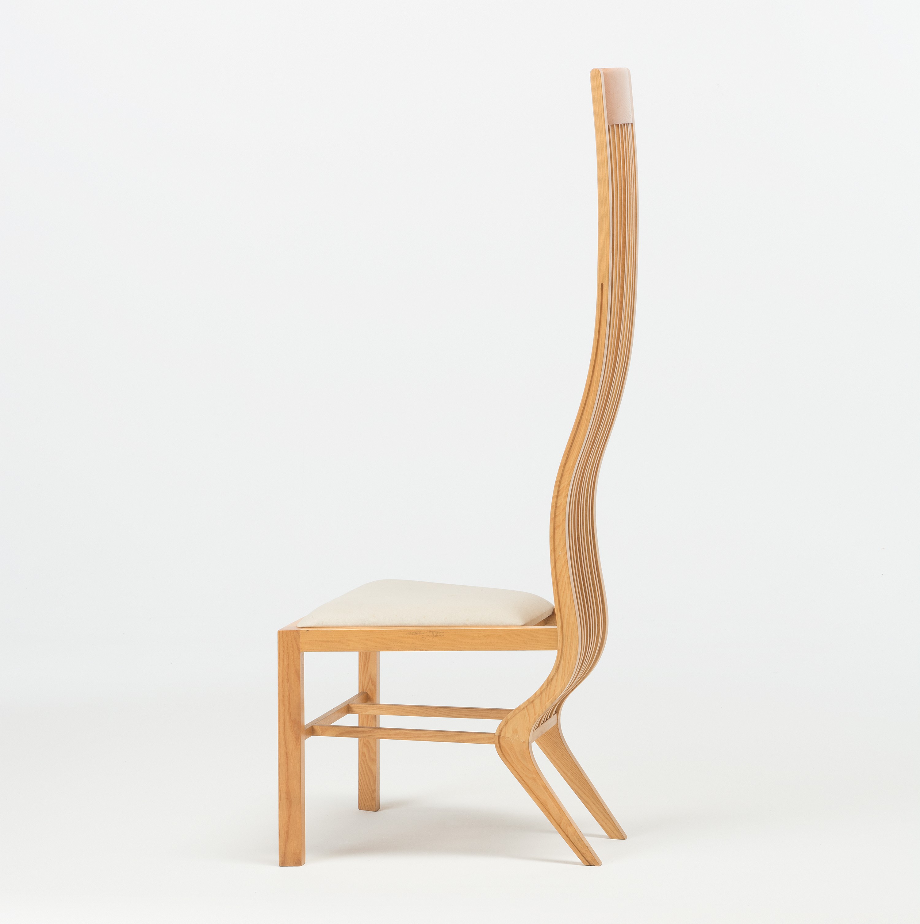デンマークの家具デザイナー、エリック・クローが1981年に書いた『The chair in the space,The space in the chair』という本があります。この本では、空間における椅子の存在と、椅子のもつ空間的広がりについて述べられています。この考え方は、これまでにないユニークなものでした。椅子の下部から上部、後方から前方へとそれぞれ広い角度を持っており、パースペクティヴを感じさせ、この椅子を実際の大きさ以上に大きく見せているのです。