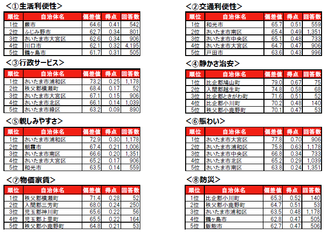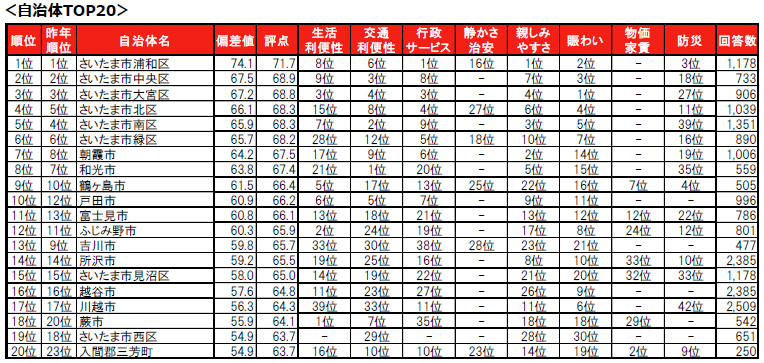 街の住みここち(自治体)ランキング2025<埼玉県版>自治体TOP20・因子別TOP5