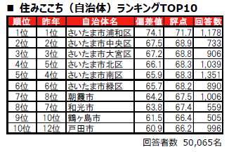 ■住みここち(自治体)トップは、7年連続でさいたま市浦和区