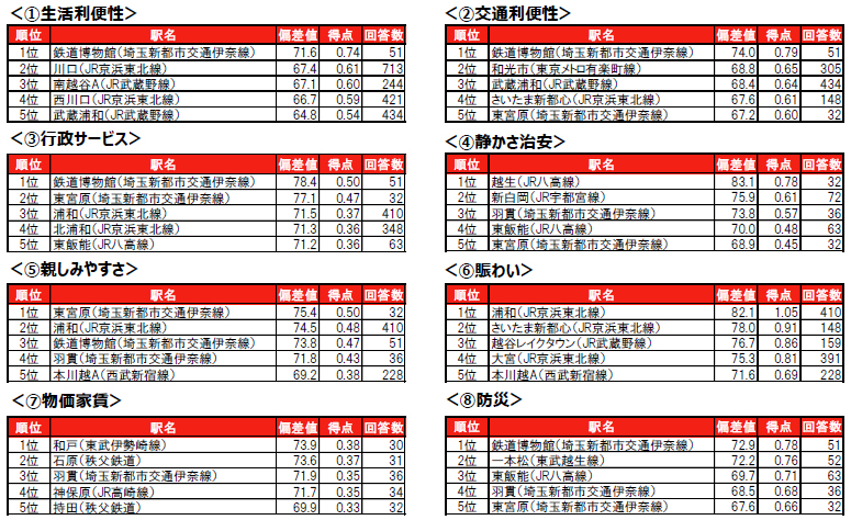 街の住みここち(駅)ランキング2025<埼玉県版>駅TOP20・因子別TOP5