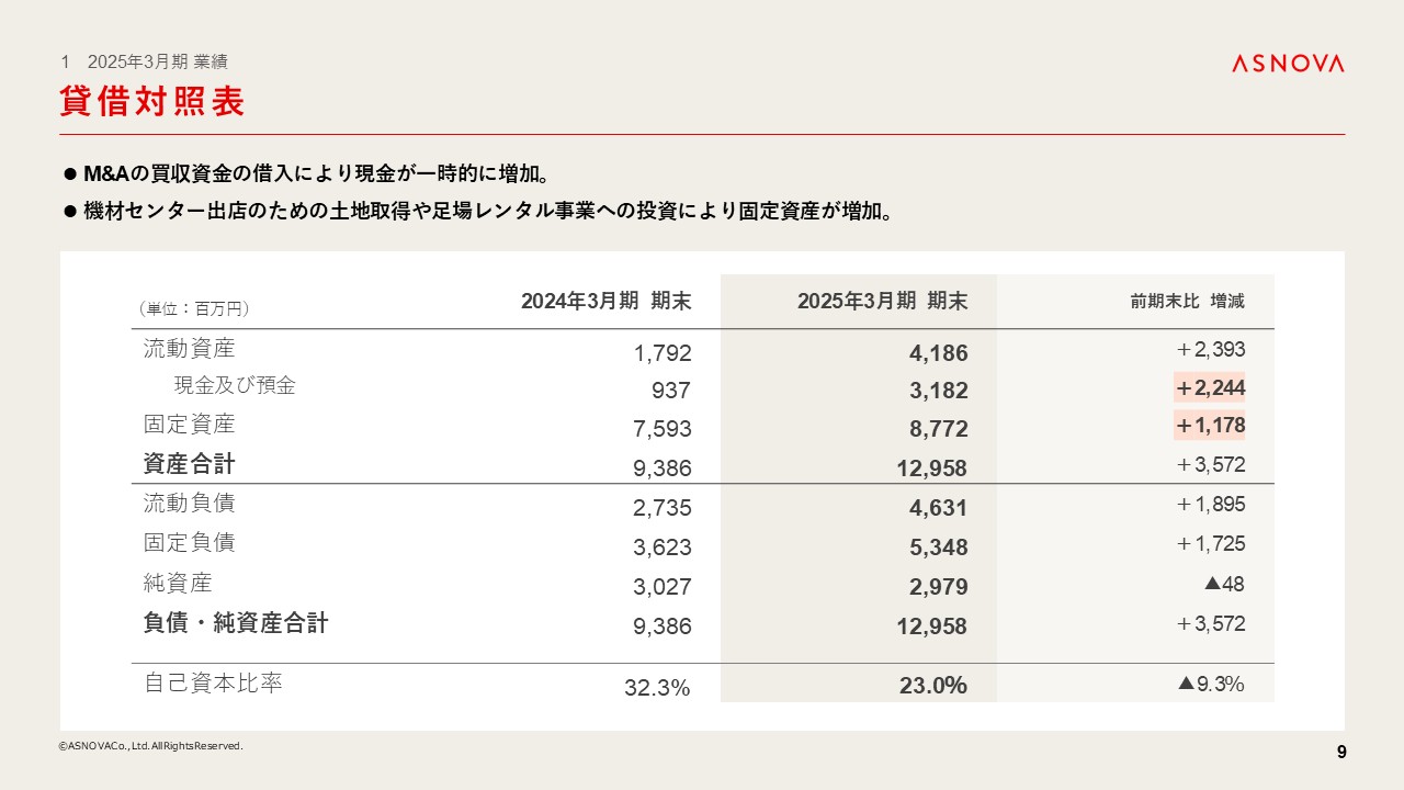 現金が大きく増加しておりますが、これは翌月4月1日に予定されていたQool社の買収資金として借り入れを実行したことによるものであり、一時的な増加となります。
