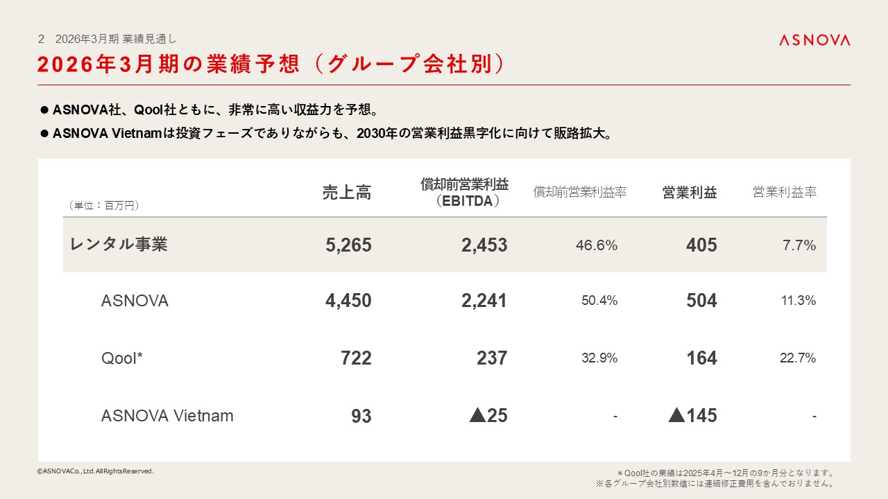 当社ASNOVAおよびQool社は、非常に収益力が高い事業となり、今後のM&A戦略を展開するうえで堅固な収益基盤となっております。