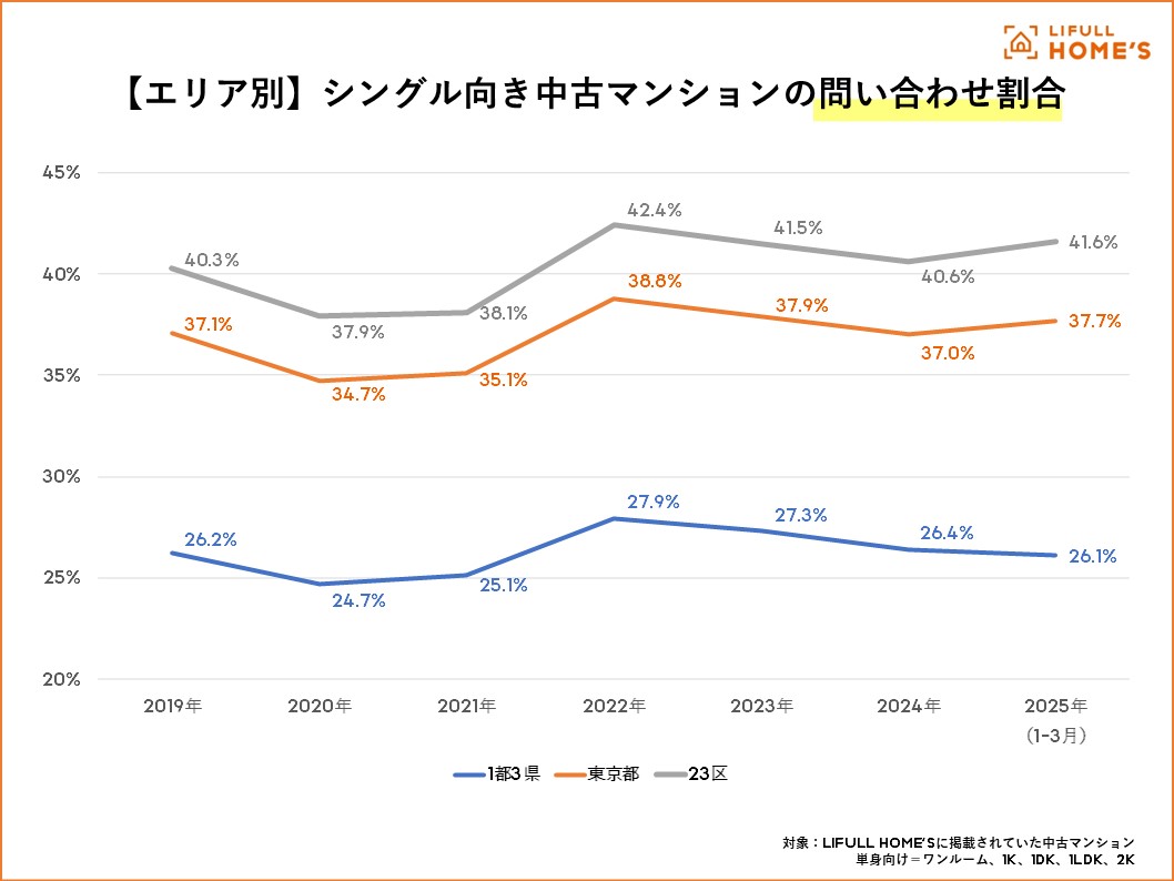 【シングル向き中古マンションの問い合わせ推移】東京23区は全体の4割を超える