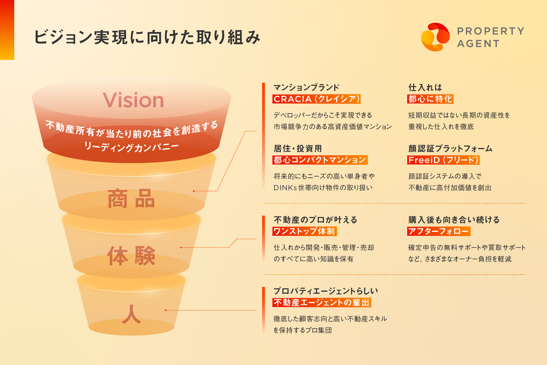 ビジョンの実現に向けて、社員一人ひとりによるPAらしい変革と挑戦を促すとともに、DX不動産ビジネスのあらゆる業務で顧客体験(CX)の強化に取り組んでまいります。