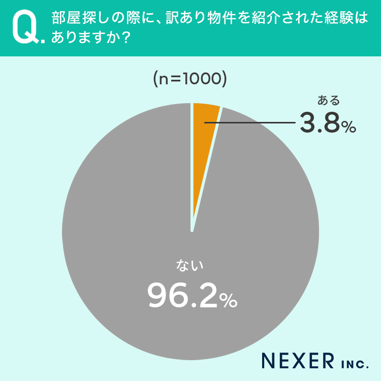 3.8%の方が部屋探しの際に、訳あり物件を紹介された経験が「ある」と回答しています。