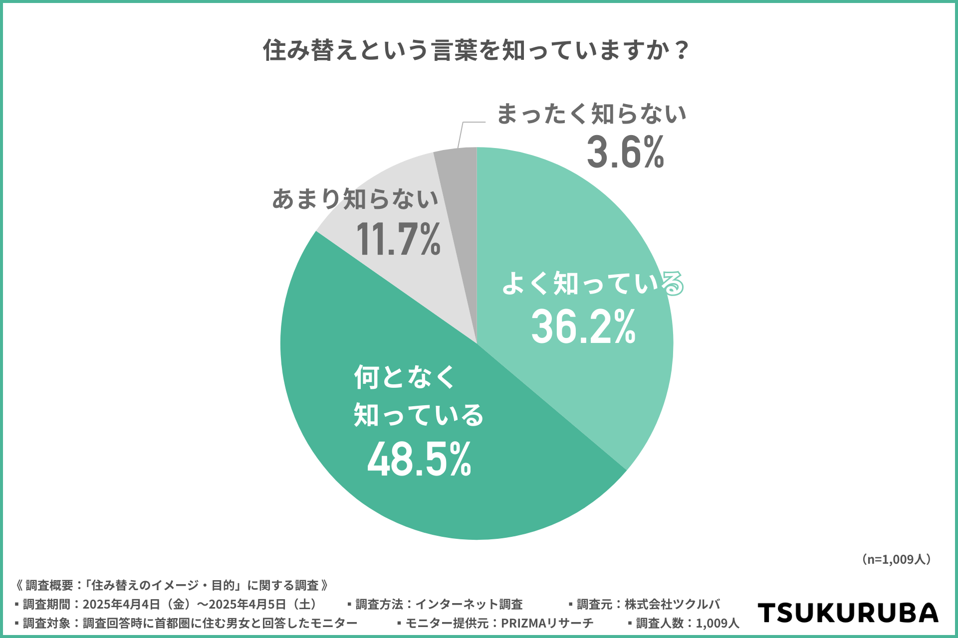 住み替え意識の背景を探るにあたり、はじめに「住み替え」という言葉の認知度を調査しました。