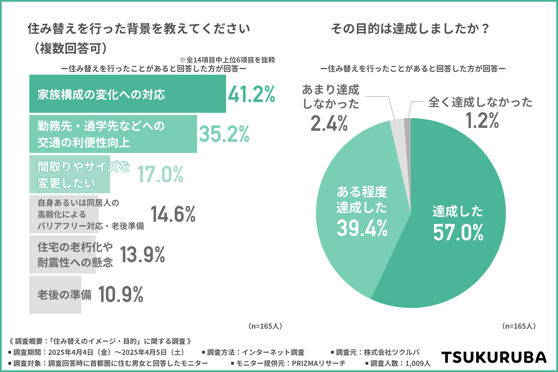 株式会社ツクルバ(所在地:東京都渋谷区、代表取締役CEO:村上 浩輝、以下「ツクルバ」)は、首都圏に持ち家を構える男女1,009人を対象に、「住み替えのイメージ・目的」に関する調査を実施しました。
