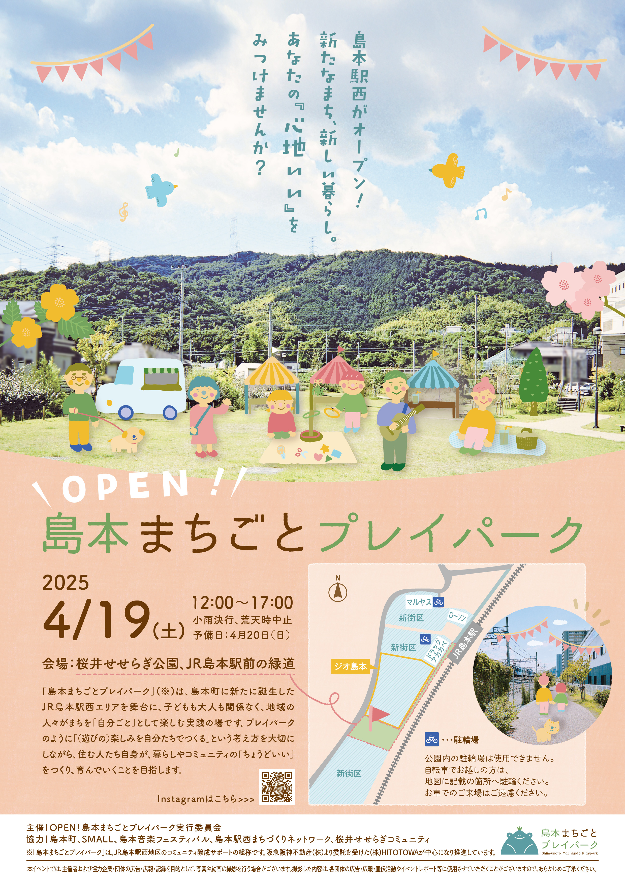 今後のイベントや取り組みの詳細は、「島本まちごとプレイパーク」公式Instagramにて随時発信しています。ぜひフォローいただき、ともに新たなまちの取り組みを見守っていただけると嬉しいです。