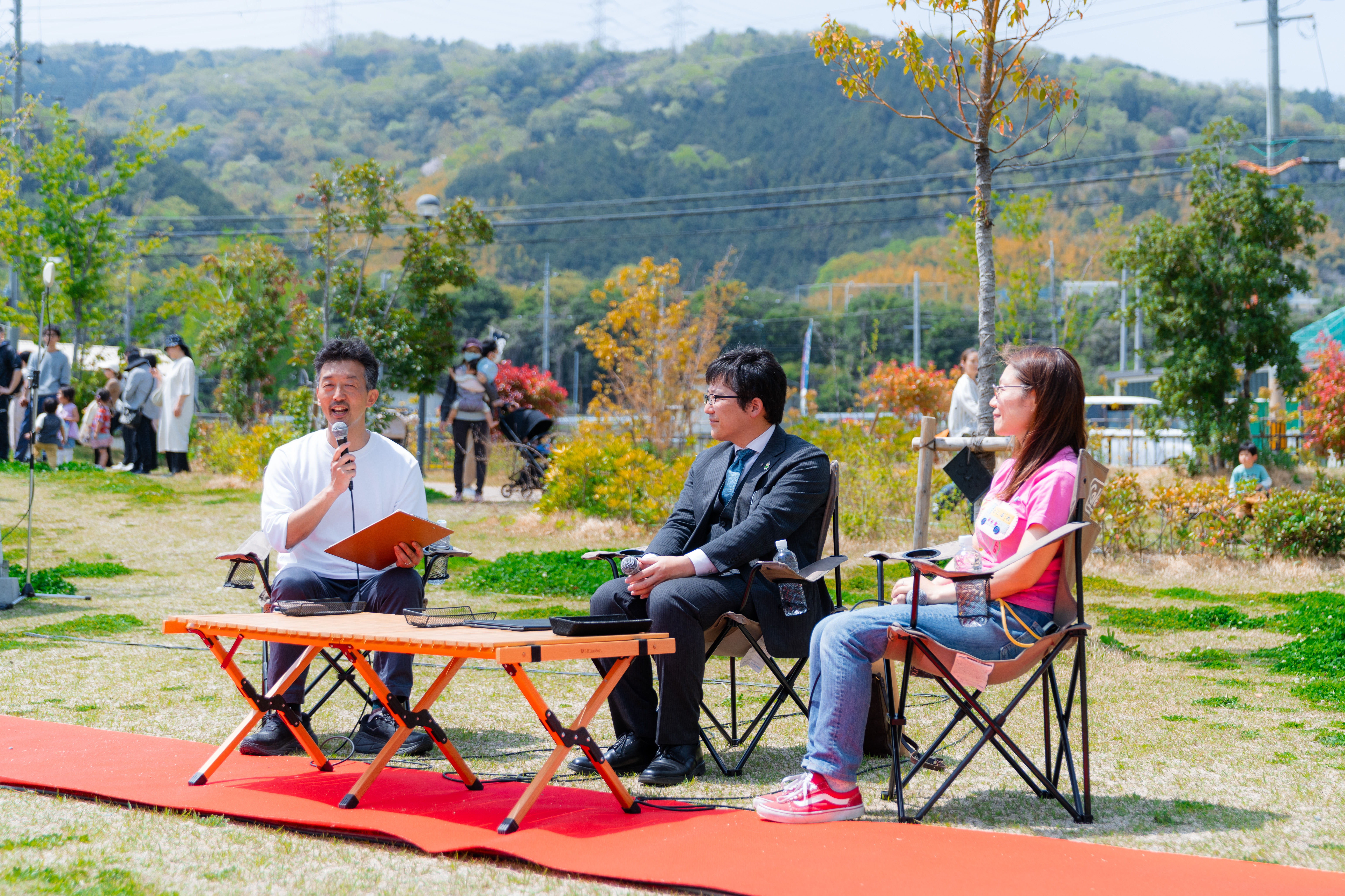 町長からは、当エリアのまちづくりにおいて、島本町らしい“常温のあたたかさ”を大切にしながら「住み続けたいと思えるまち」を目指してきた背景が語られました。また、自然体験活動に力を注いできたご自身の経験や、木登りインストラクターとしてのエピソードもお話しいただき、今後の当エリアへの思いをお話いただきました。
