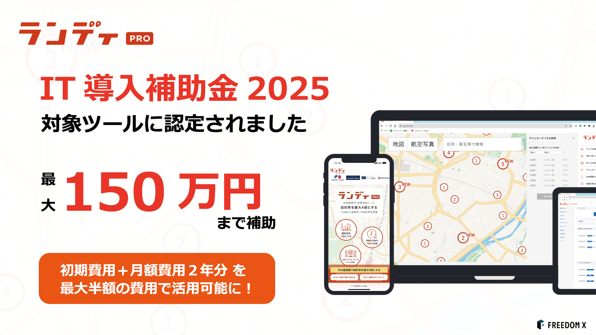 また当社が運営する、注文建築事業における土地探し顧客案件の成約率を最大4倍にするDXツール『ランディPRO』が、2025年度IT導入補助金・通常枠の対象ツールとして認定されたことをお知らせいたします。