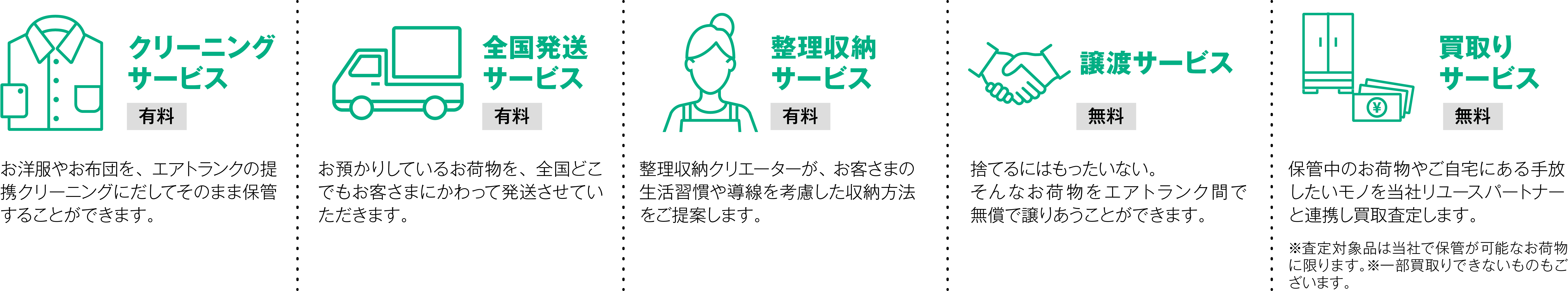 オプションで預けた衣類のクリーニングや、品物の日本全国への発送代行、エアトランクの