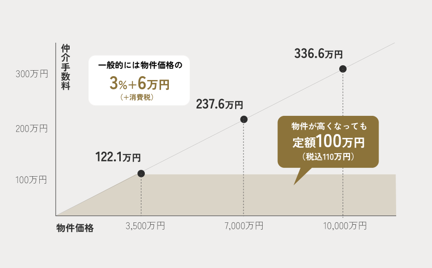 物件価格が高額になるほどお得に。ローン斡旋手数料も不要の、透明性ある料金体系を提供