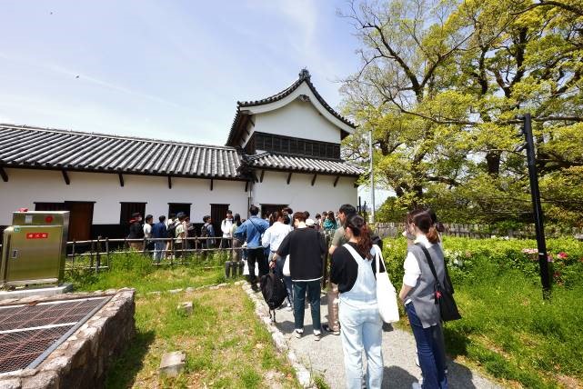 当日は大変気持ちの良い晴天となりました。午前10時、当社の運営する食事付き学生マンションの新入居者より、参加希望のあった45名が「(伝)潮見櫓・下之橋御門」前に集合しました。史跡整備活用課の職員様より挨拶と当日の予定についての説明のあと、建物へと移動します。