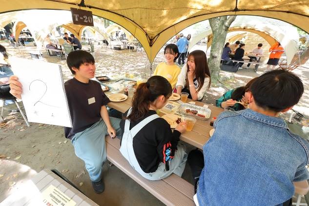 お昼には、舞鶴公園内にて交流を目的にしたウェルカムBBQパーティが開催されました。一緒に作業を行った後とあって参加者は今日初めて会ったとは思えないほど打ち解け合い、ゲーム大会などで、とても盛り上がりました。