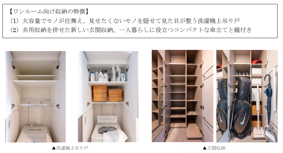 ワンルーム向け 洗濯機上吊り戸と玄関収納を開発