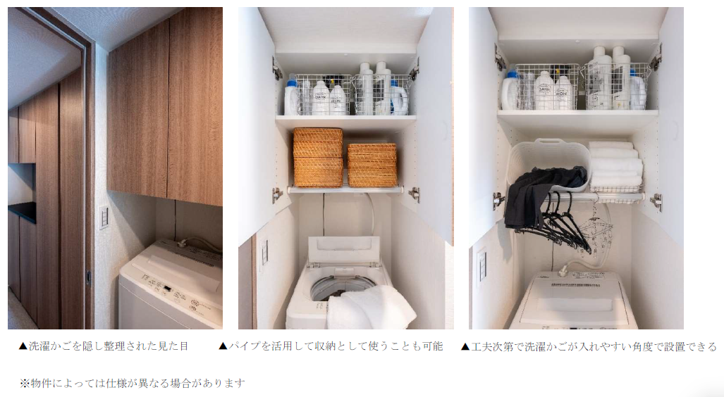 ■大容量でモノが仕舞え、見せたくないモノを隠せて見た目が整う洗濯機上吊り戸