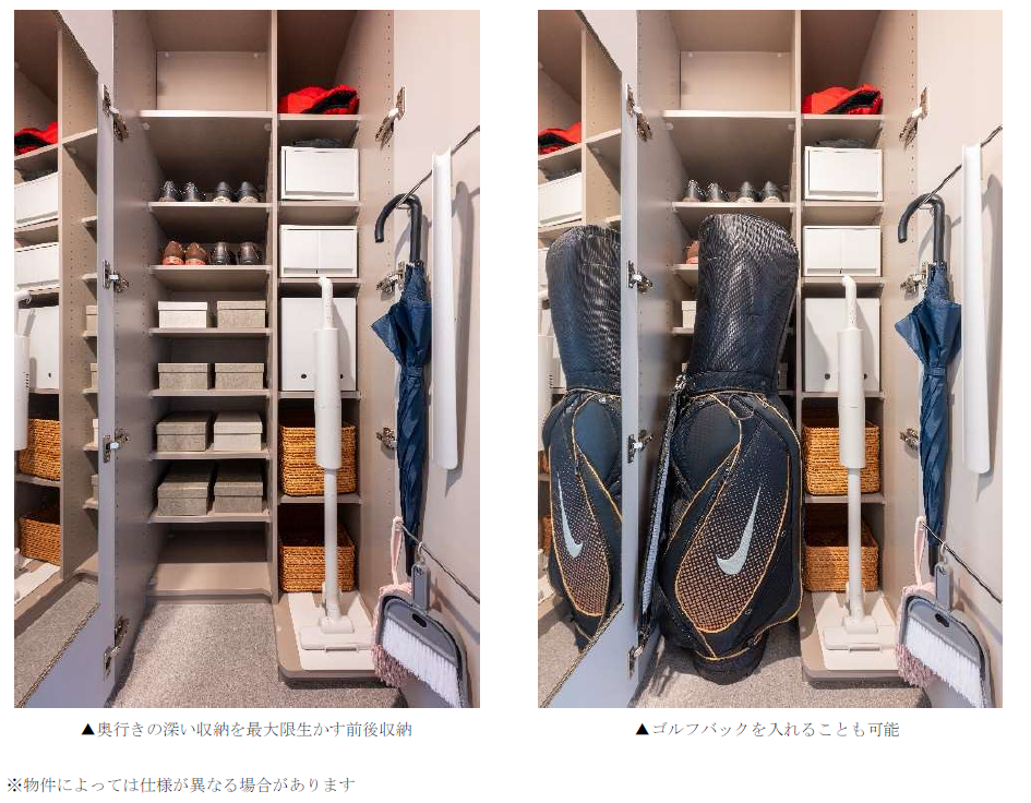 掃除機やゴルフバッグ等の置き場所に困るものを収納できることで、室内の快適性を損なわずに生活することができます。