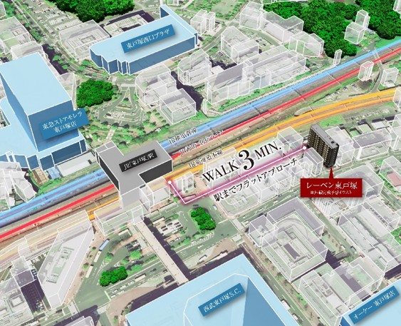 「レーベン東戸塚」は横浜エリアへの交通アクセスと、最寄り駅周辺の生活利便施設の充実を合わせ持つJR「東戸塚」駅近に誕生します。最寄り駅からダイレクトアクセスで首都圏にも接続可能で通勤・通学にも便利な立地です。