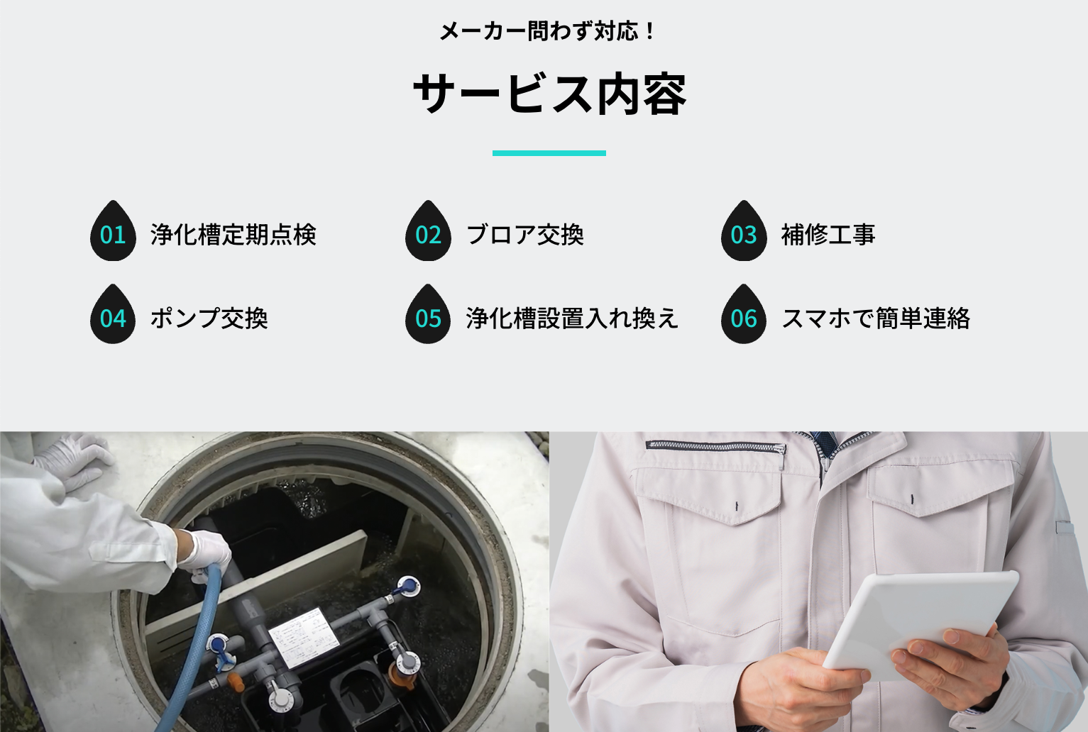 スマートフォンで簡単に、浄化槽メーカーならではの安心をお届けします