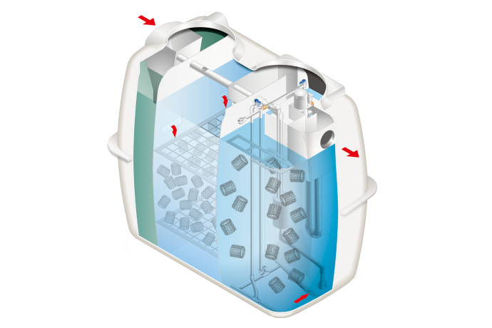 浄化槽(合併処理浄化槽)とは、公共の下水道が配管されていない家庭に設置される汚水処理設備です。下水道では、ユーザーは汚れた水をそのまま排水管に流し、下水処理場でまとめて浄化します。一方、浄化槽では、各家庭ごとに汚水を処理し、きれいな水にしてから自然に返す仕組みです。つまり、浄化槽ユーザーは「自分たちで環境にやさしい水をつくり、自然の水循環に貢献している」といえます。