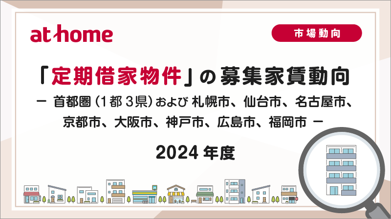 不動産情報サービスのアットホーム株式会社(本社:東京都大田区 代表取締役社長:鶴森 康史)の不動産情報ネットワークで消費者向けに登録・公開された、2024年度(2024年4月~2025年3月)の定期借家物件の募集家賃動向について、アットホームラボ株式会社(東京都千代田区 代表取締役社長:大武 義隆)に調査・分析を委託し、アットホームが公表するものです。