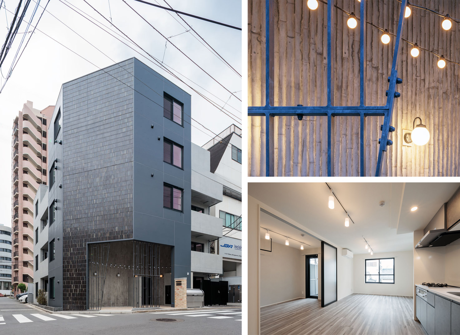 戸越周辺は、江戸時代から明治時代にかけて竹の子の名産地として知られ、現在も、たけのこ祭りや竹の子をあしらったマンホール蓋など、竹にまつわる文化が地域に根付いています。こうした街に息づく文化を現代建築に取り込み、エントランスは竹林をイメージした竹型枠打放し仕上げを採用いたしました。