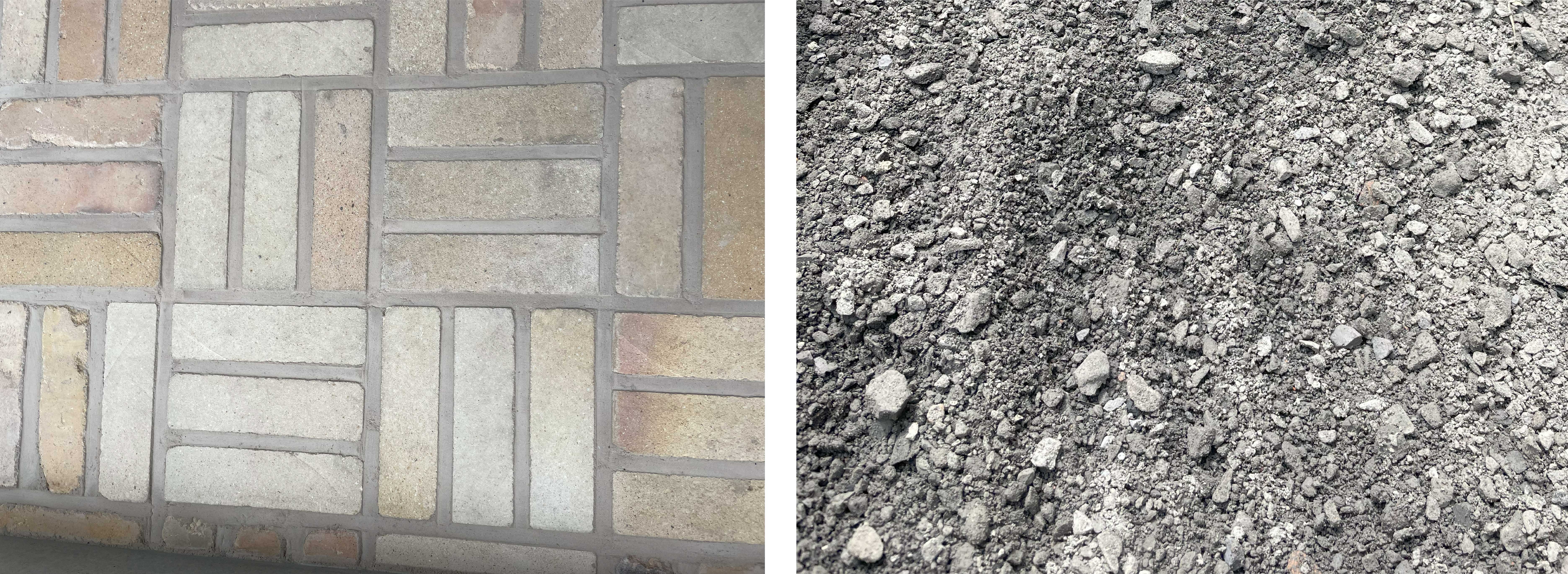本物件の周辺に位置する戸越銀座商店街は、関東大震災で被害を受けた銀座から廃材レンガを譲り受けて通りに敷き詰めたという歴史があり、現在も当時のレンガが商店街に展示されています。戸越銀座の名前の由来となった銀座のタイルの再利用とともに、サステナブルな建築の一環として、再生レンガタイルをエントランス床に使用しました。また、外構に瓦チップを敷き、再生材料を活用しております。